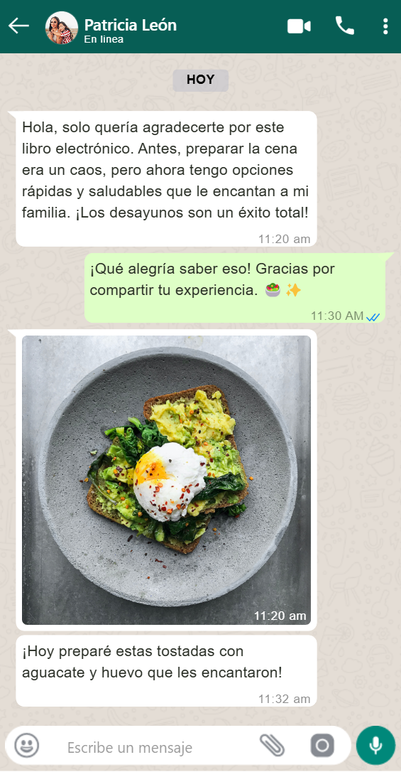 Una vez completes el pago, recibirás automáticamente un correo electrónico con las instrucciones para acceder a la plataforma. Desde allí, podrás descargar tu eBook inmediatamente y comenzar a disfrutar de +120 recetas saludables.